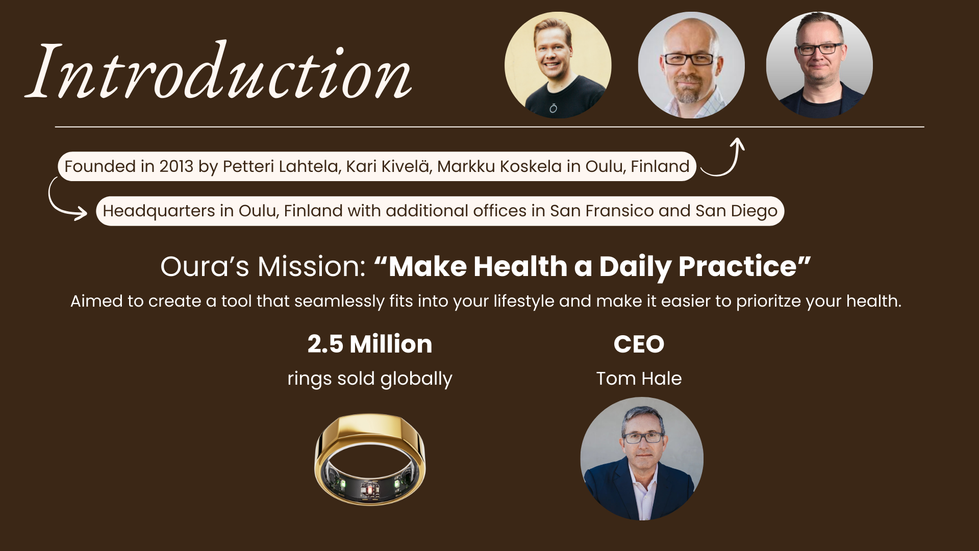 Entering the Masters of Management Program at the University of Michigan's Ross School of Business, my team in BA 500 (Business Immersion) was given the task to select a company's product and analyze the market around it. Looking at the Oura Ring, we researched the company, its competitors, consumers, channel partners, and context to develop the full market map of this product.